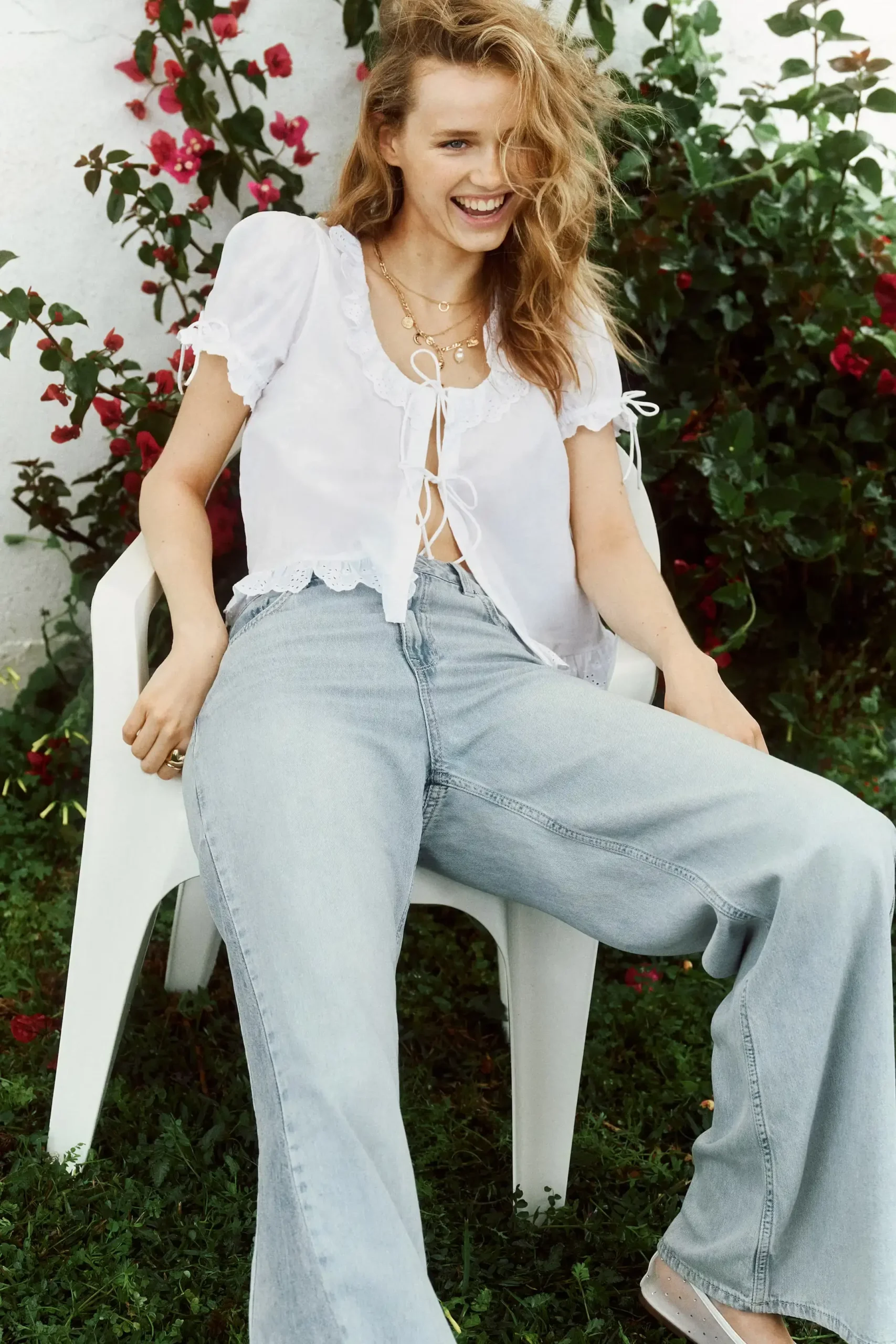 5 reviews for Romantic Tie-Front Lace Trim Blouse